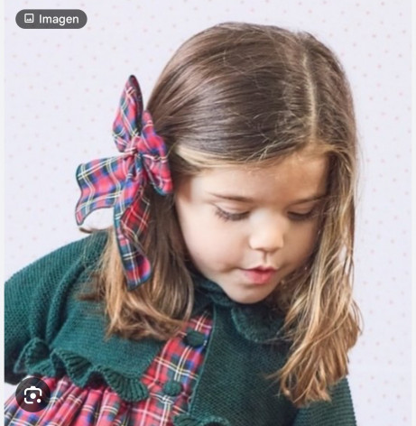 Para completar el look de este conjunto GROSELLA braguita y blusa, disponemos de lazo a juego en tejido vichy floral, así como bonito jersey de grecas en agua marina y rosa fuerte empolvado, con detalles en verde.